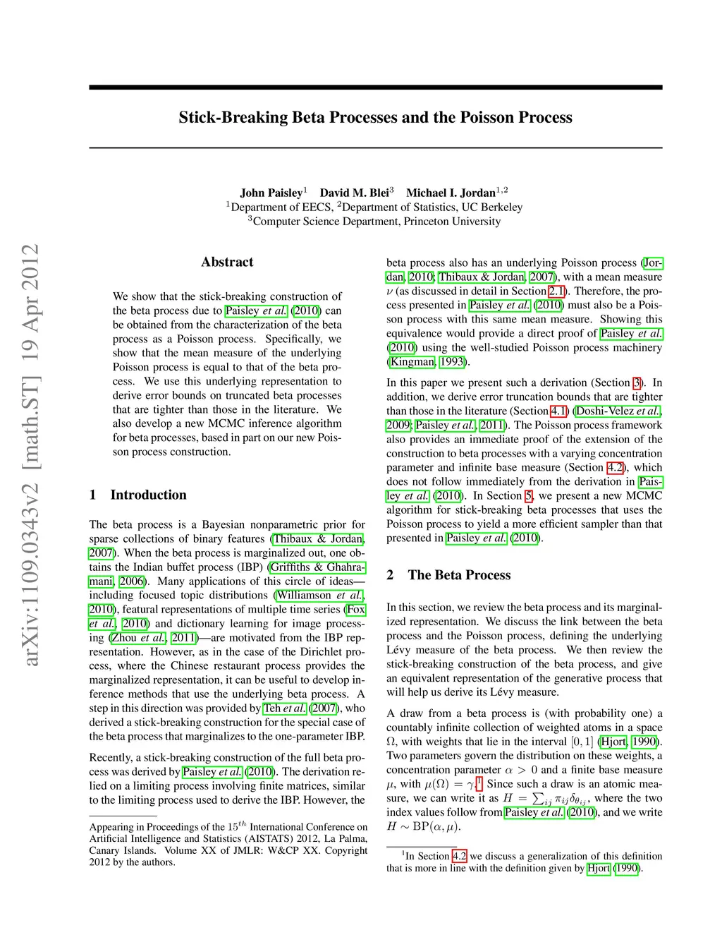 We show that the stick-breaking construction of the beta process due to Paisley, et al. (2010) can be obtained from the characterization of the beta process as a Poisson process. Specifically, we show that the mean measure of the underlying Poisson process is equal to that of the beta process. We use this underlying representation to derive error bounds on truncated beta processes that are tighter than those in the literature. We also develop a new MCMC inference algorithm for beta processes, based in part on our new Poisson process construction.