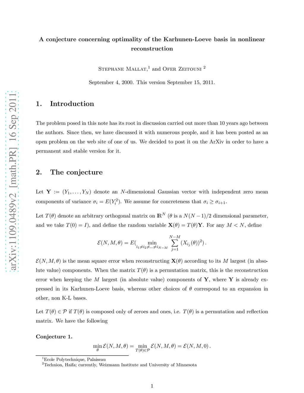 A conjecture concerning optimality of the Karhunen-Loeve basis in