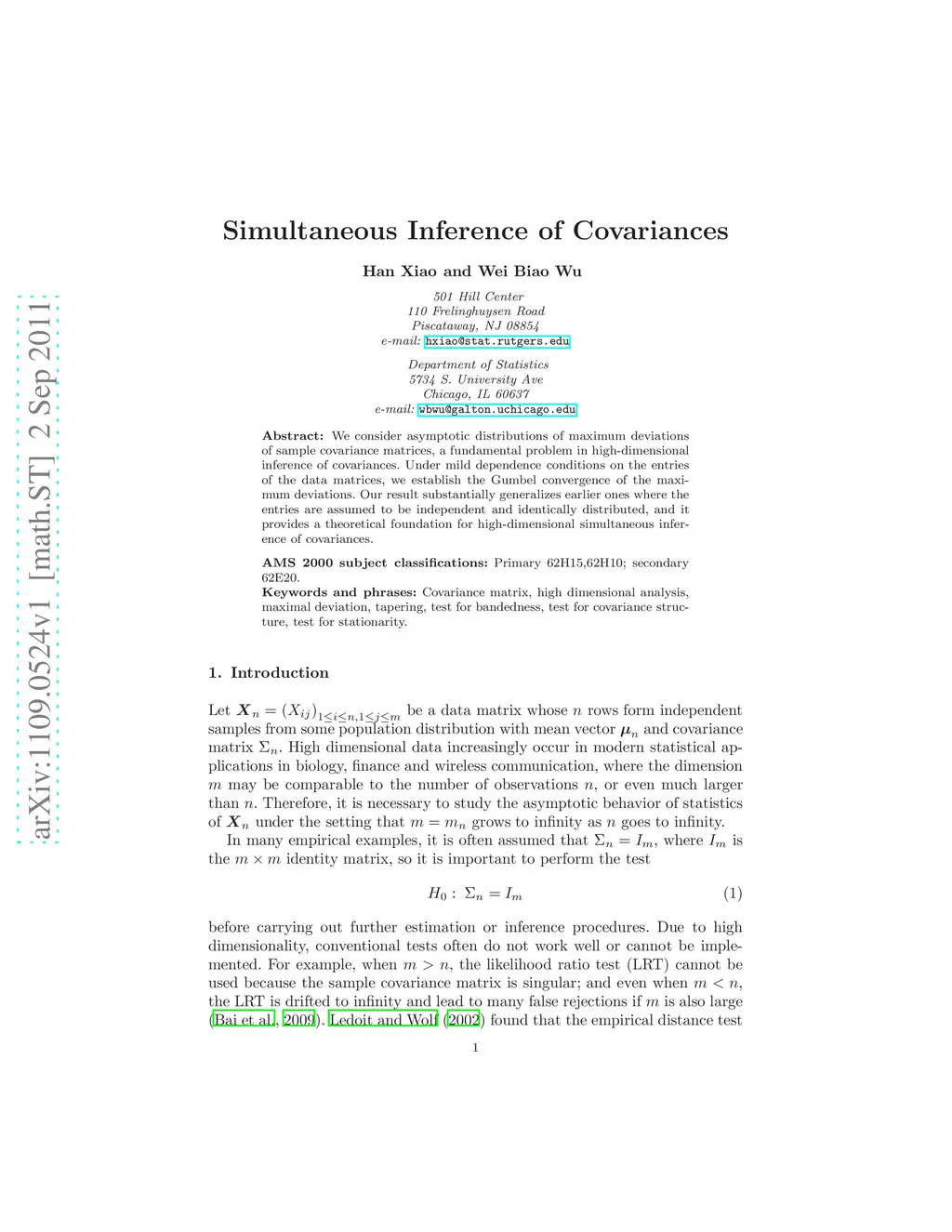 Simultaneous Inference of Covariances