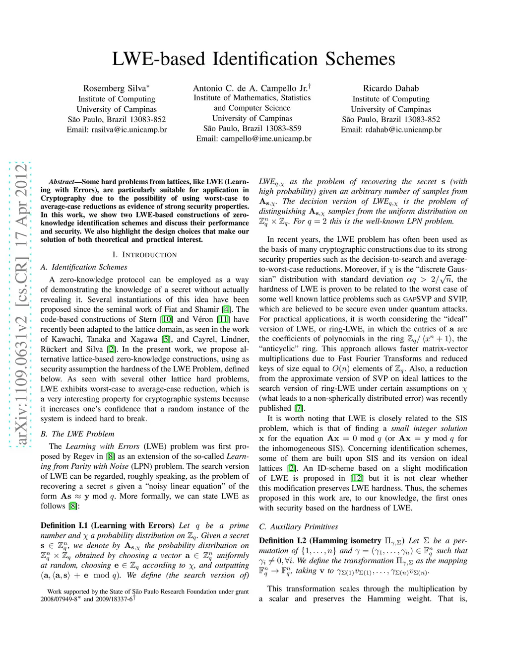 LWE-based Identification Schemes