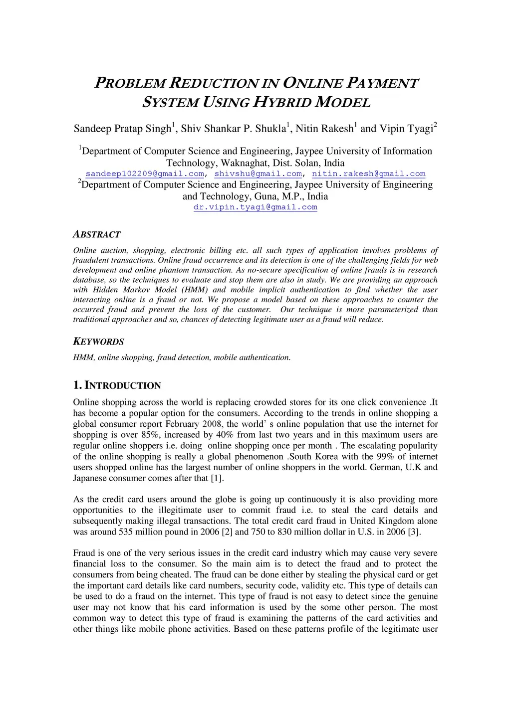 Online auction, shopping, electronic billing etc. all such types of application involves problems of fraudulent transactions. Online fraud occurrence and its detection is one of the challenging fields for web development and online phantom transaction. As no-secure specification of online frauds is in research database, so the techniques to evaluate and stop them are also in study. We are providing an approach with Hidden Markov Model (HMM) and mobile implicit authentication to find whether the user interacting online is a fraud or not. We propose a model based on these approaches to counter the occurred fraud and prevent the loss of the customer. Our technique is more parameterized than traditional approaches and so,chances of detecting legitimate user as a fraud will reduce.