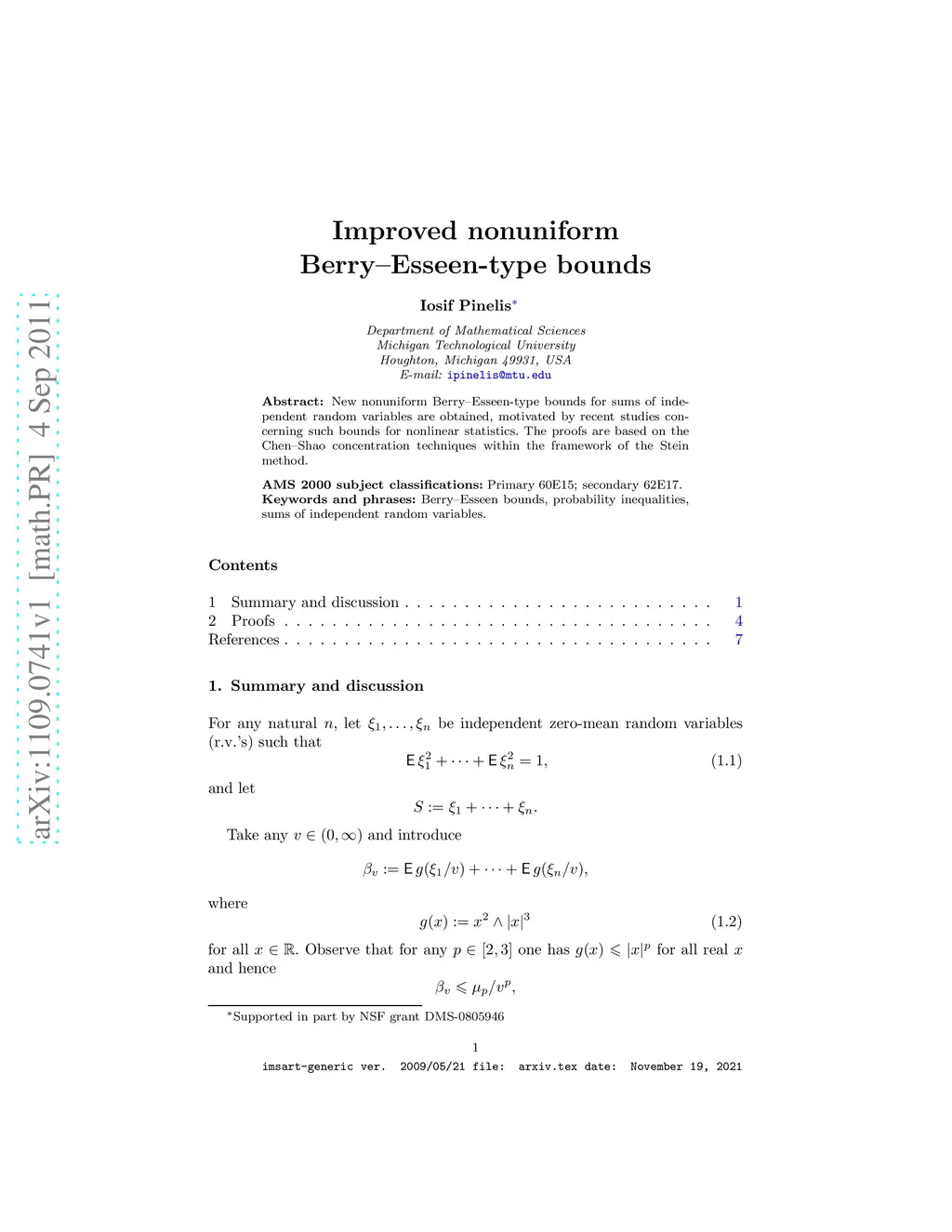 New nonuniform Berry--Esseen-type bounds for sums of independent random variables are obtained, motivated by recent studies concerning such bounds for nonlinear statistics. The proofs are based on the Chen--Shao concentration techniques within the framework of the Stein method.