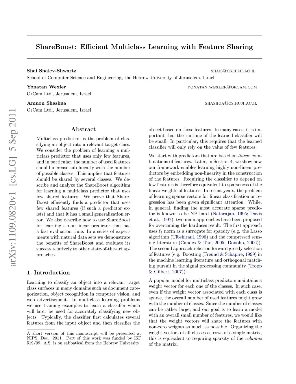 ShareBoost: Efficient Multiclass Learning with Feature Sharing