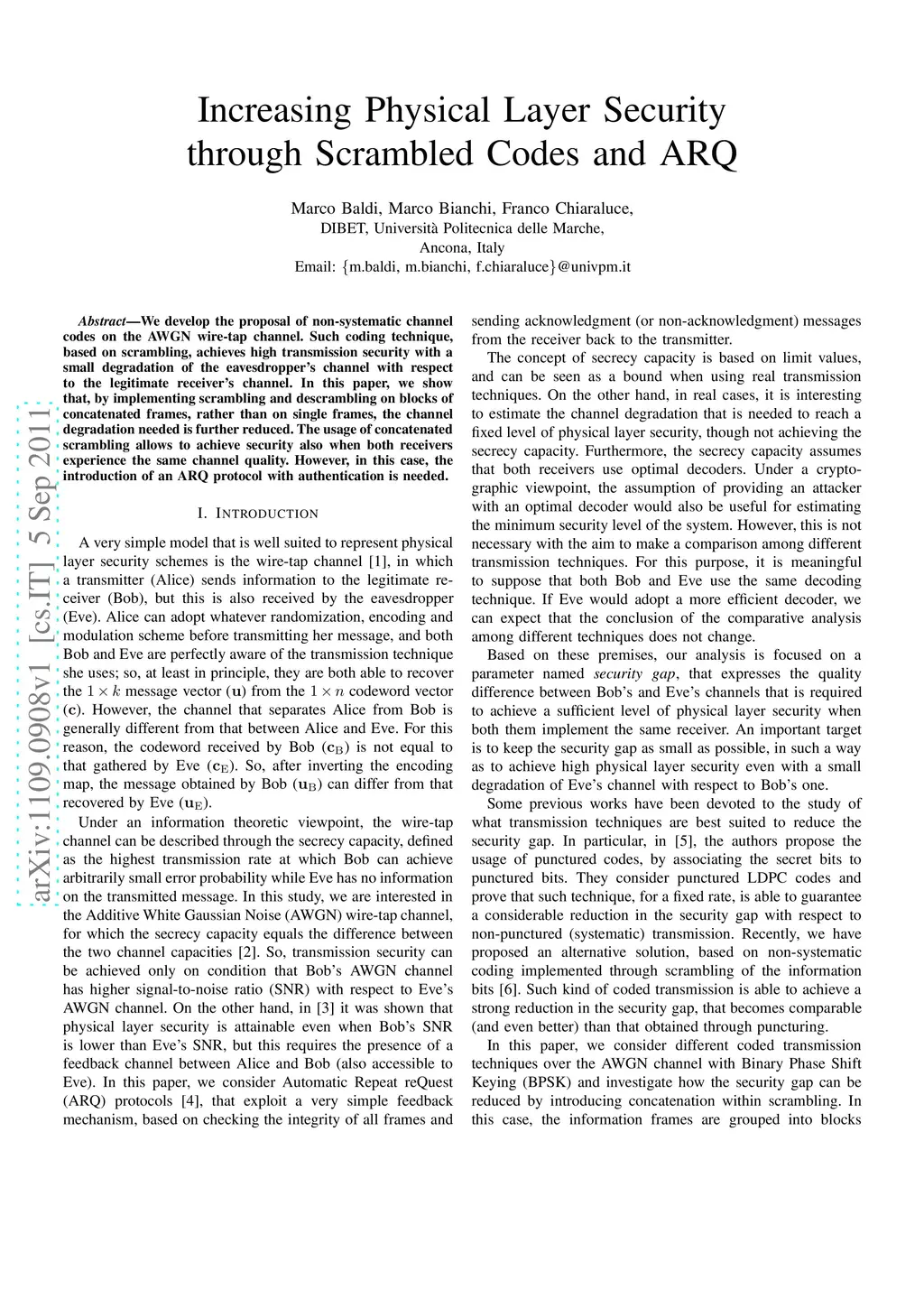 Increasing Physical Layer Security through Scrambled Codes and ARQ