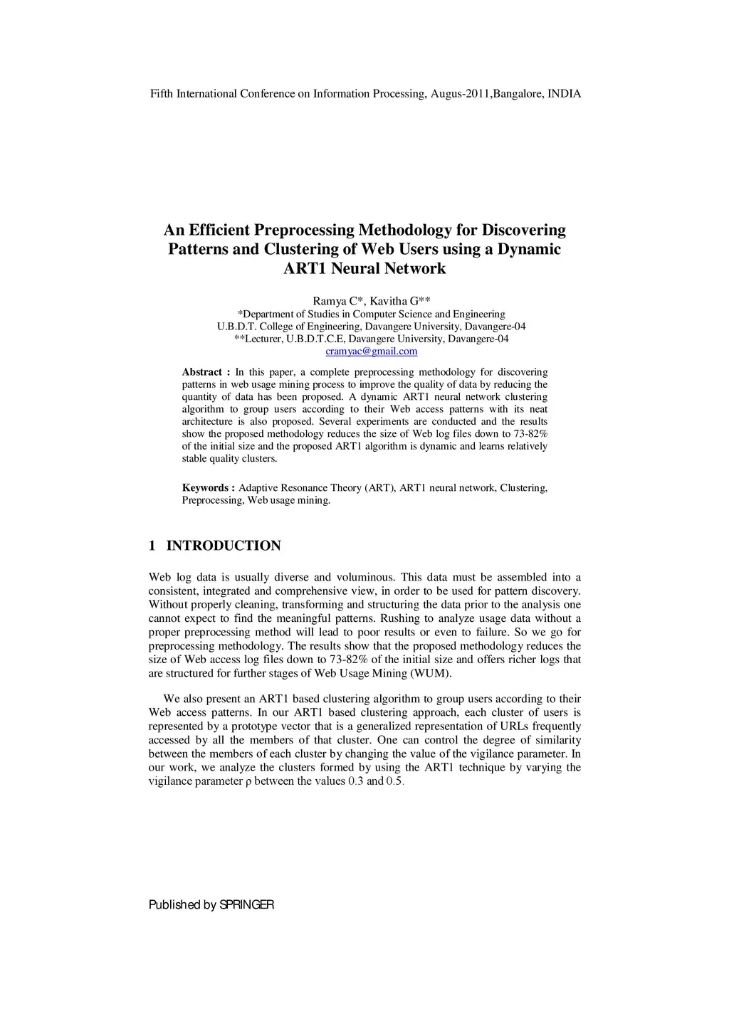 In this paper, a complete preprocessing methodology for discovering patterns in web usage mining process to improve the quality of data by reducing the quantity of data has been proposed. A dynamic ART1 neural network clustering algorithm to group users according to their Web access patterns with its neat architecture is also proposed. Several experiments are conducted and the results show the proposed methodology reduces the size of Web log files down to 73-82% of the initial size and the proposed ART1 algorithm is dynamic and learns relatively stable quality clusters.