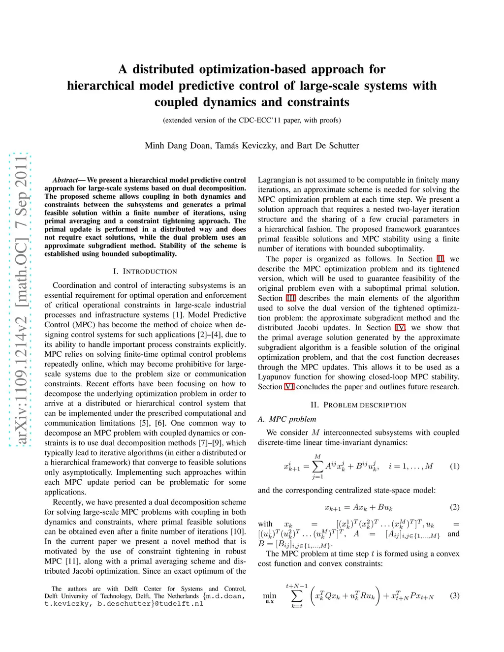 predictive control of large-scale systems with coupled dynamics and
