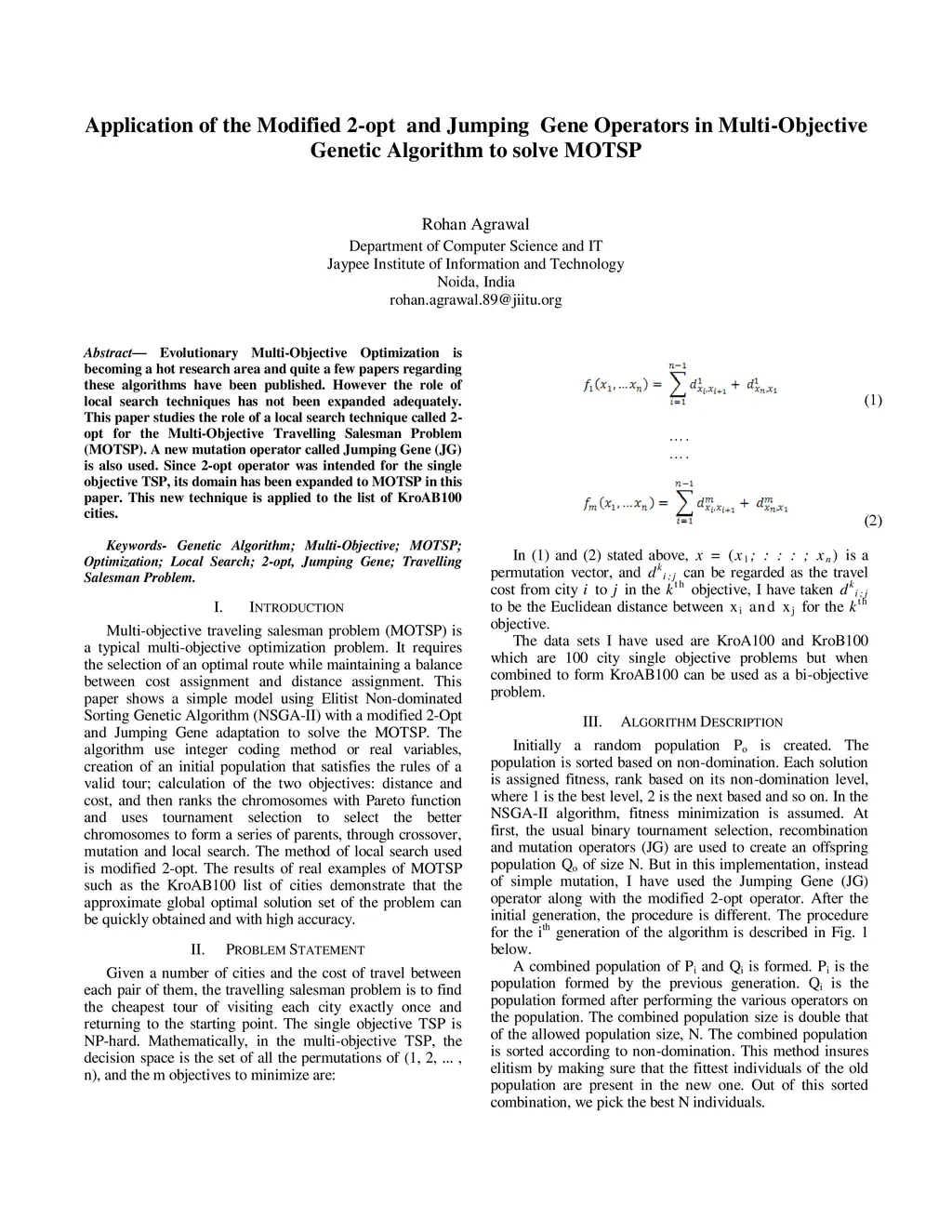 Application of the Modified 2-opt and Jumping Gene Operators in