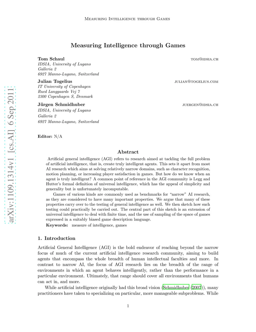 Measuring Intelligence through Games