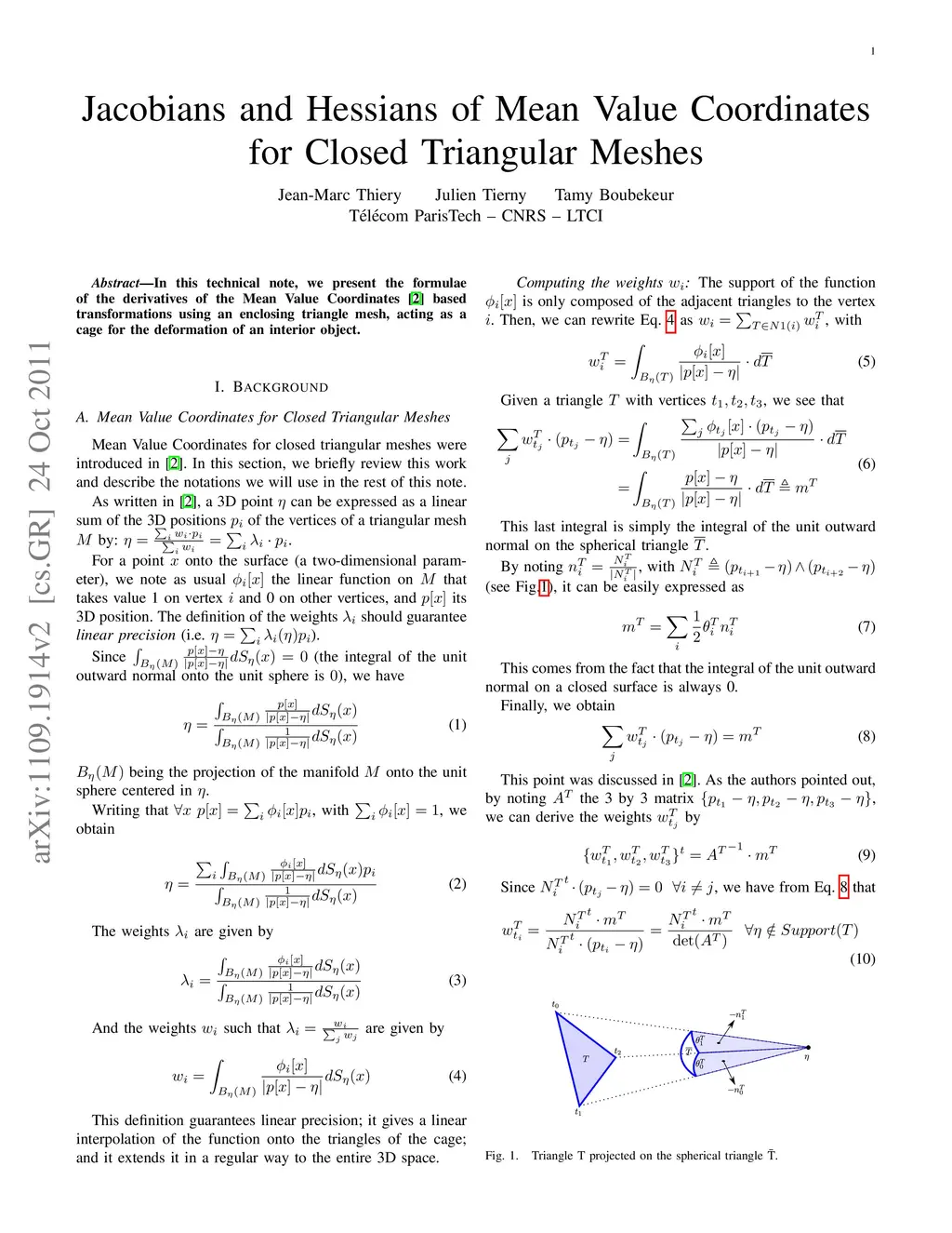 In this technical note, we present the formulae of the derivatives of the Mean Value Coordinates based transformations, using an enclosing triangle mesh, acting as a cage for the deformation of an interior object.