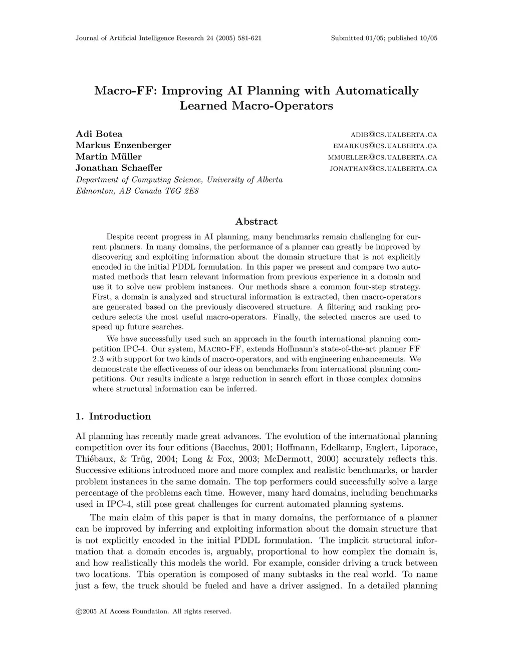 Macro-FF: Improving AI Planning with Automatically Learned