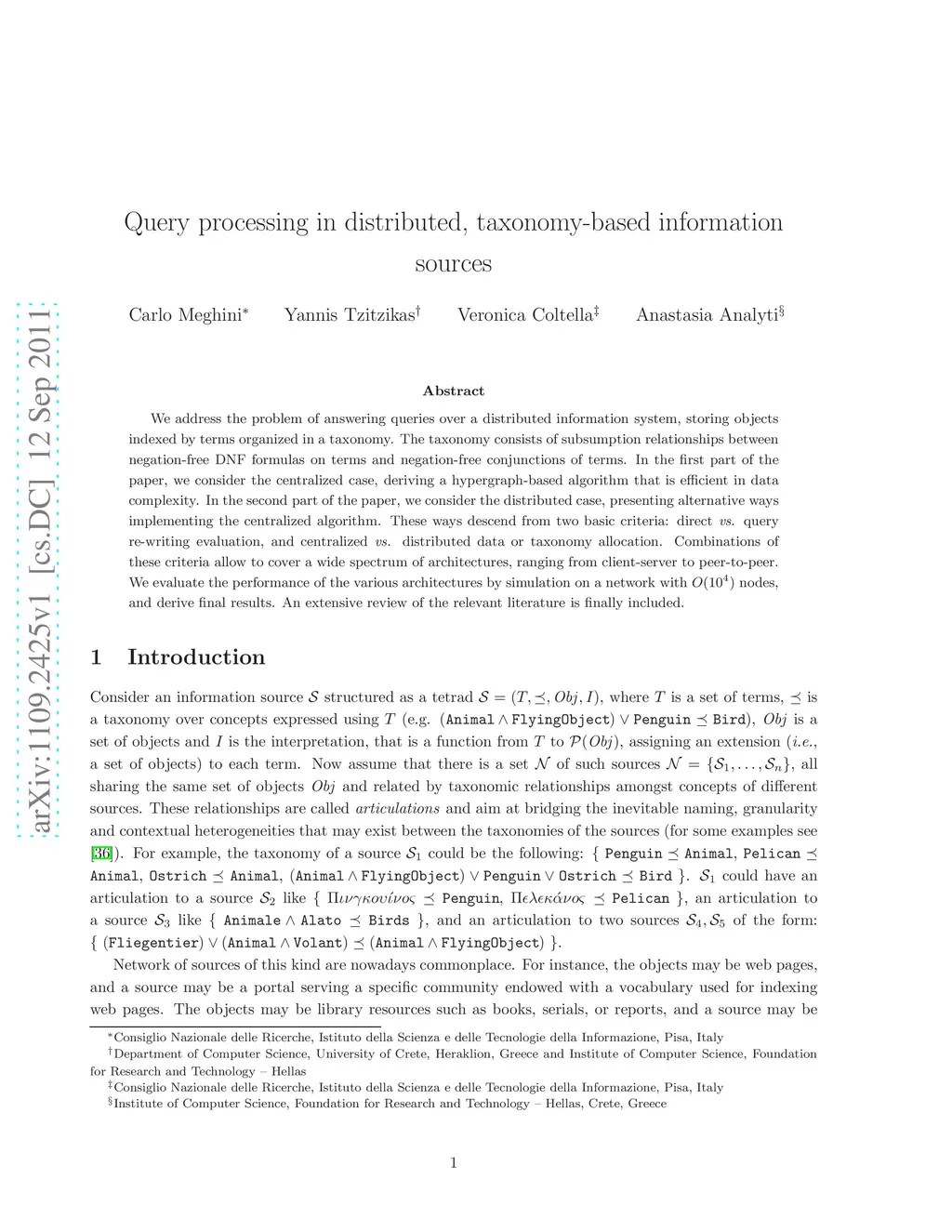 Query processing in distributed, taxonomy-based information sources