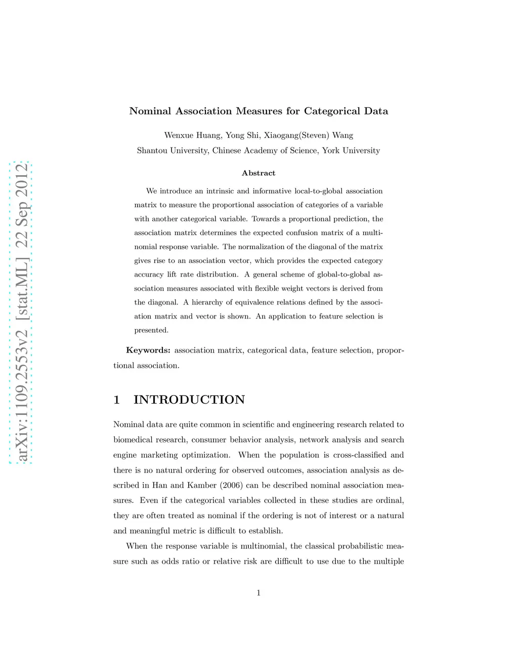 Nominal Association Vector and Matrix