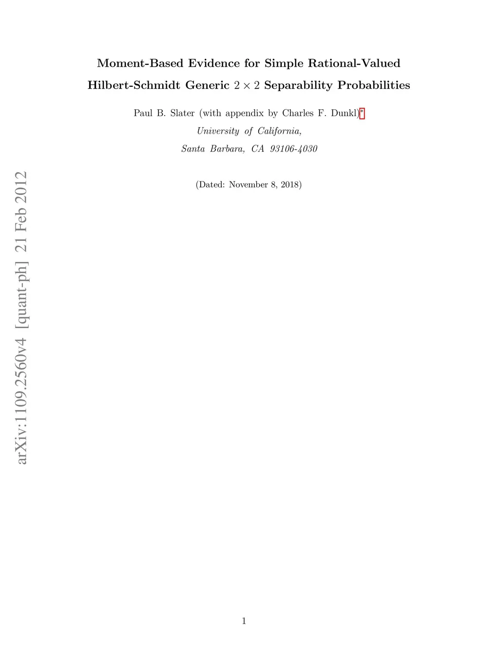 2 x 2 Separability Probabilities