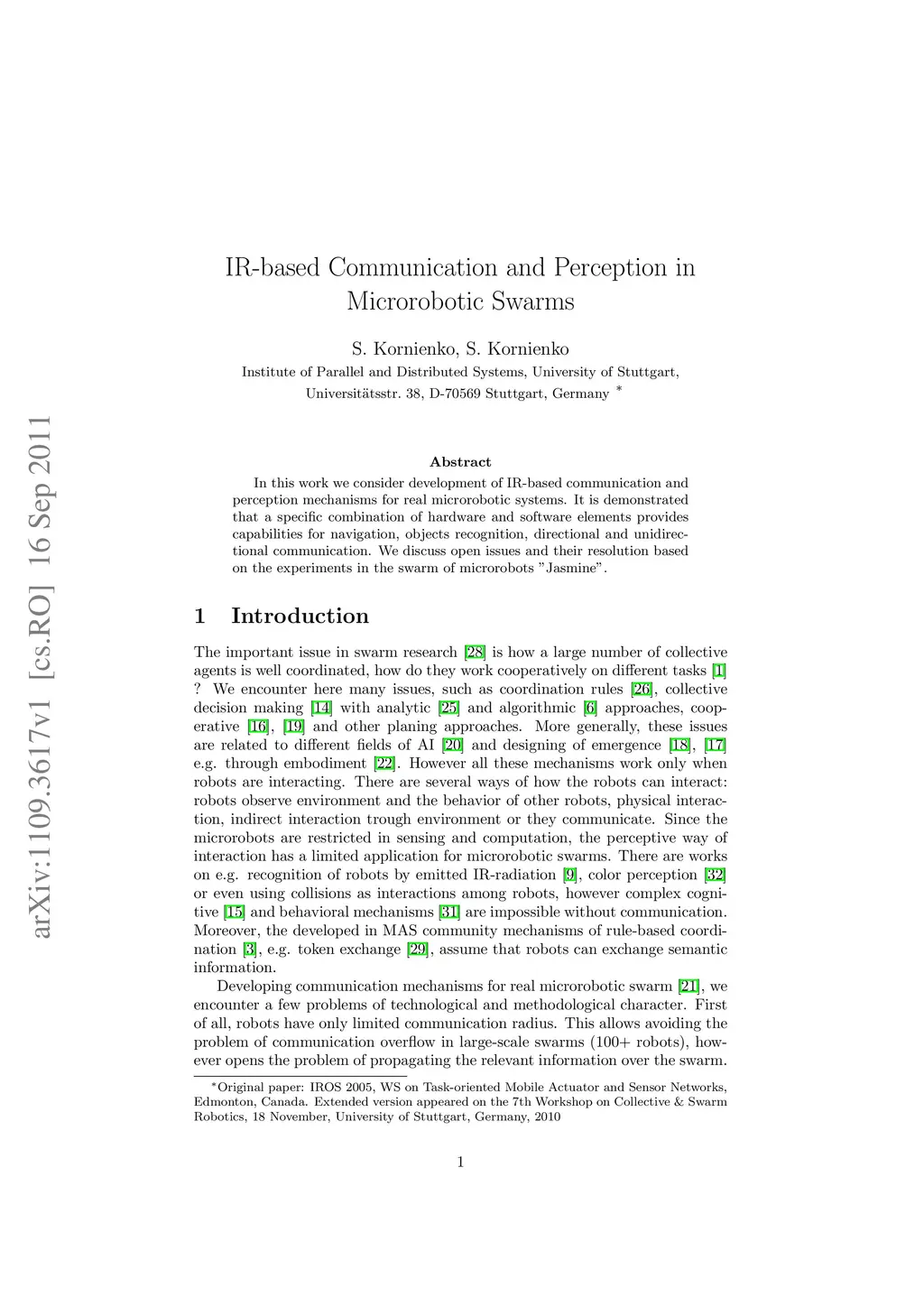 In this work we consider development of IR-based communication and perception mechanisms for real microrobotic systems. It is demonstrated that a specific combination of hardware and software elements provides capabilities for navigation, objects recognition, directional and unidirectional communication. We discuss open issues and their resolution based on the experiments in the swarm of microrobots "Jasmine".