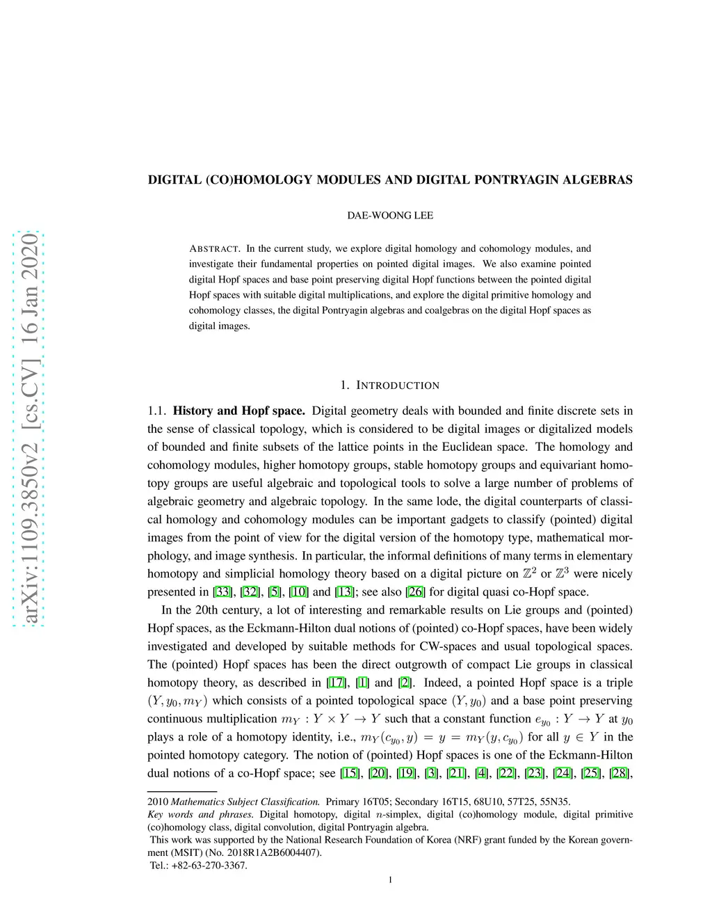 Digital (co)homology modules and digital Pontryagin algebras