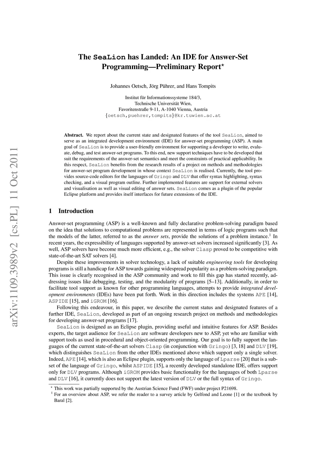 The SeaLion has Landed: An IDE for Answer-Set Programming---Preliminary