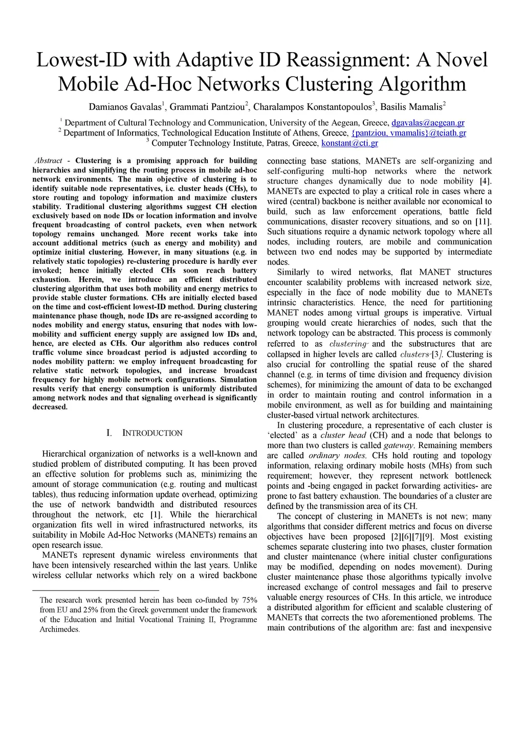 Lowest-ID with Adaptive ID Reassignment: A Novel Mobile Ad-Hoc Networks