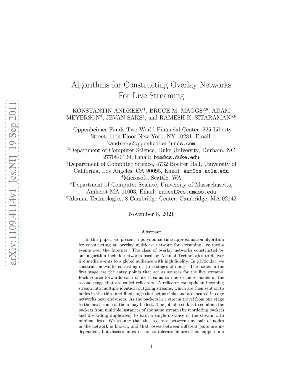 Algorithms for Constructing Overlay Networks For Live Streaming