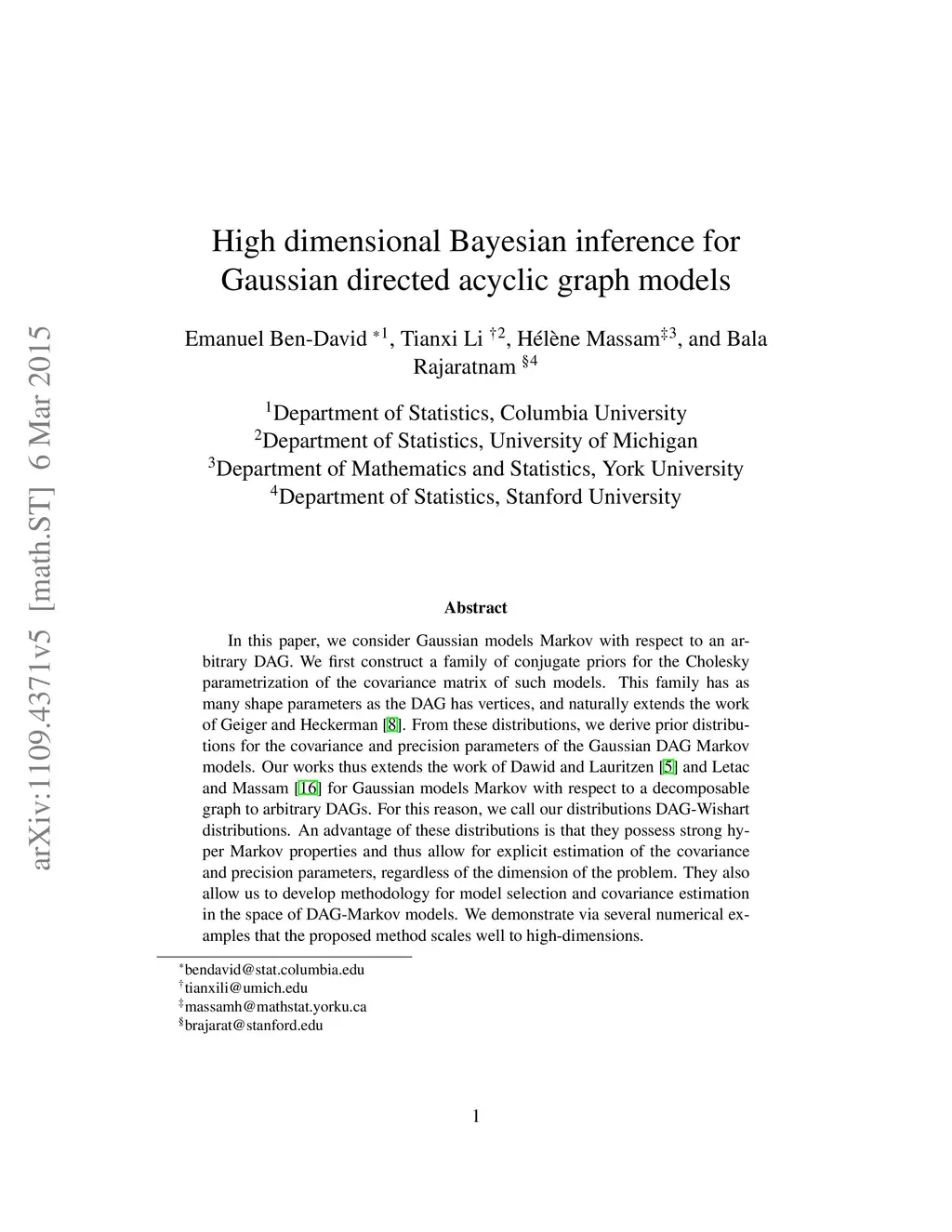 High dimensional Bayesian inference for Gaussian directed acyclic graph