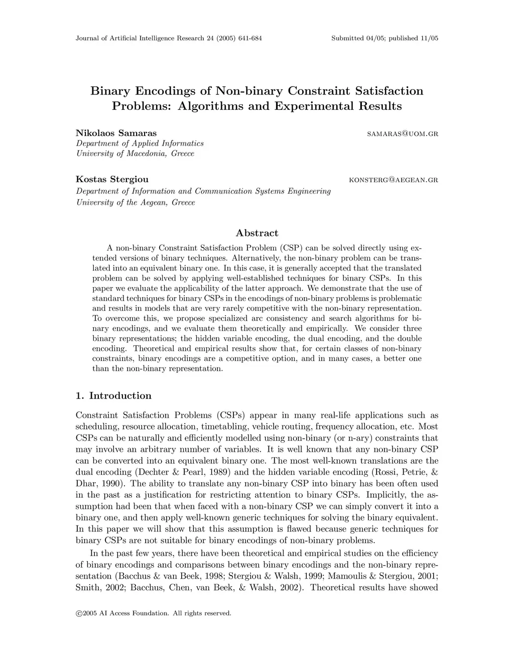 Binary Encodings of Non-binary Constraint Satisfaction Problems: