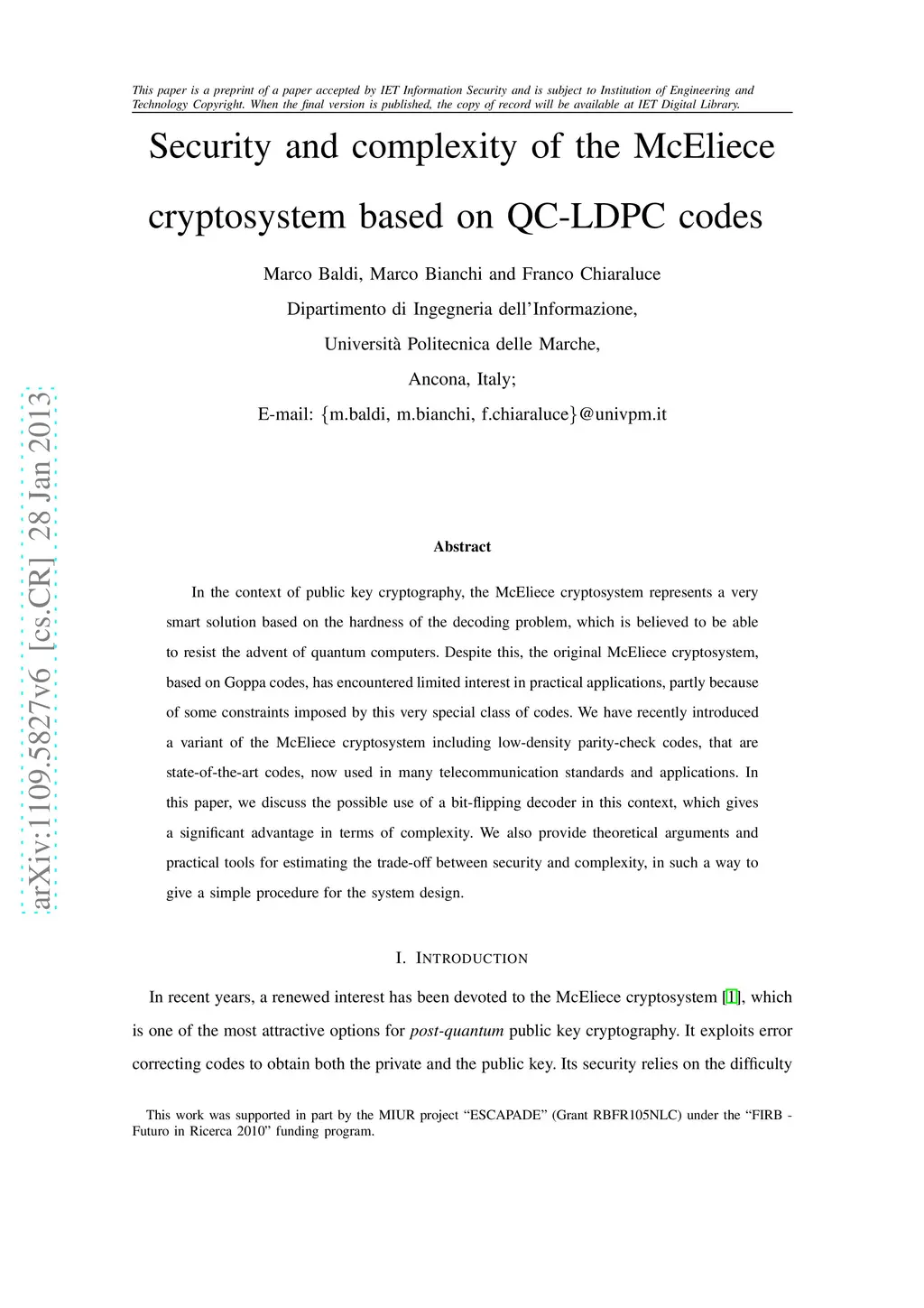 Security and complexity of the McEliece cryptosystem based on QC-LDPC
