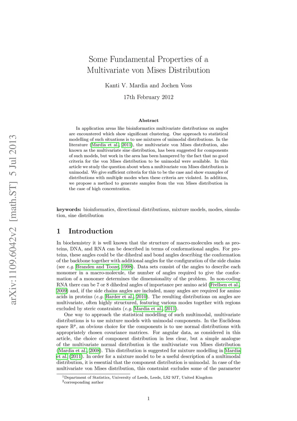 In application areas like bioinformatics multivariate distributions on angles are encountered which show significant clustering. One approach to statistical modelling of such situations is to use mixtures of unimodal distributions. In the literature (Mardia et al., 2011), the multivariate von Mises distribution, also known as the multivariate sine distribution, has been suggested for components of such models, but work in the area has been hampered by the fact that no good criteria for the von Mises distribution to be unimodal were available. In this article we study the question about when a multivariate von Mises distribution is unimodal. We give sufficient criteria for this to be the case and show examples of distributions with multiple modes when these criteria are violated. In addition, we propose a method to generate samples from the von Mises distribution in the case of high concentration.
