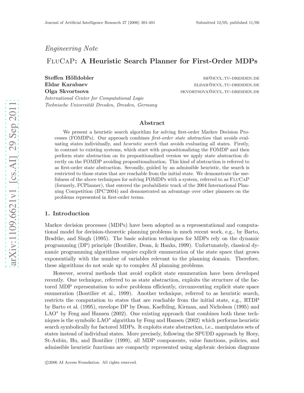 FluCaP: A Heuristic Search Planner for First-Order MDPs
