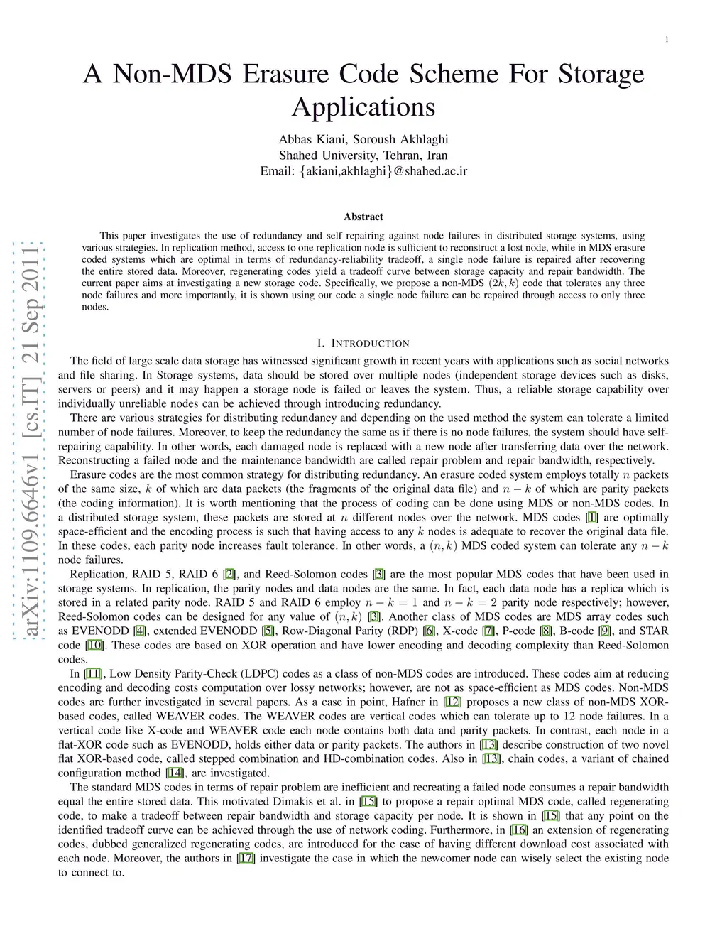A Non-MDS Erasure Code Scheme For Storage Applications