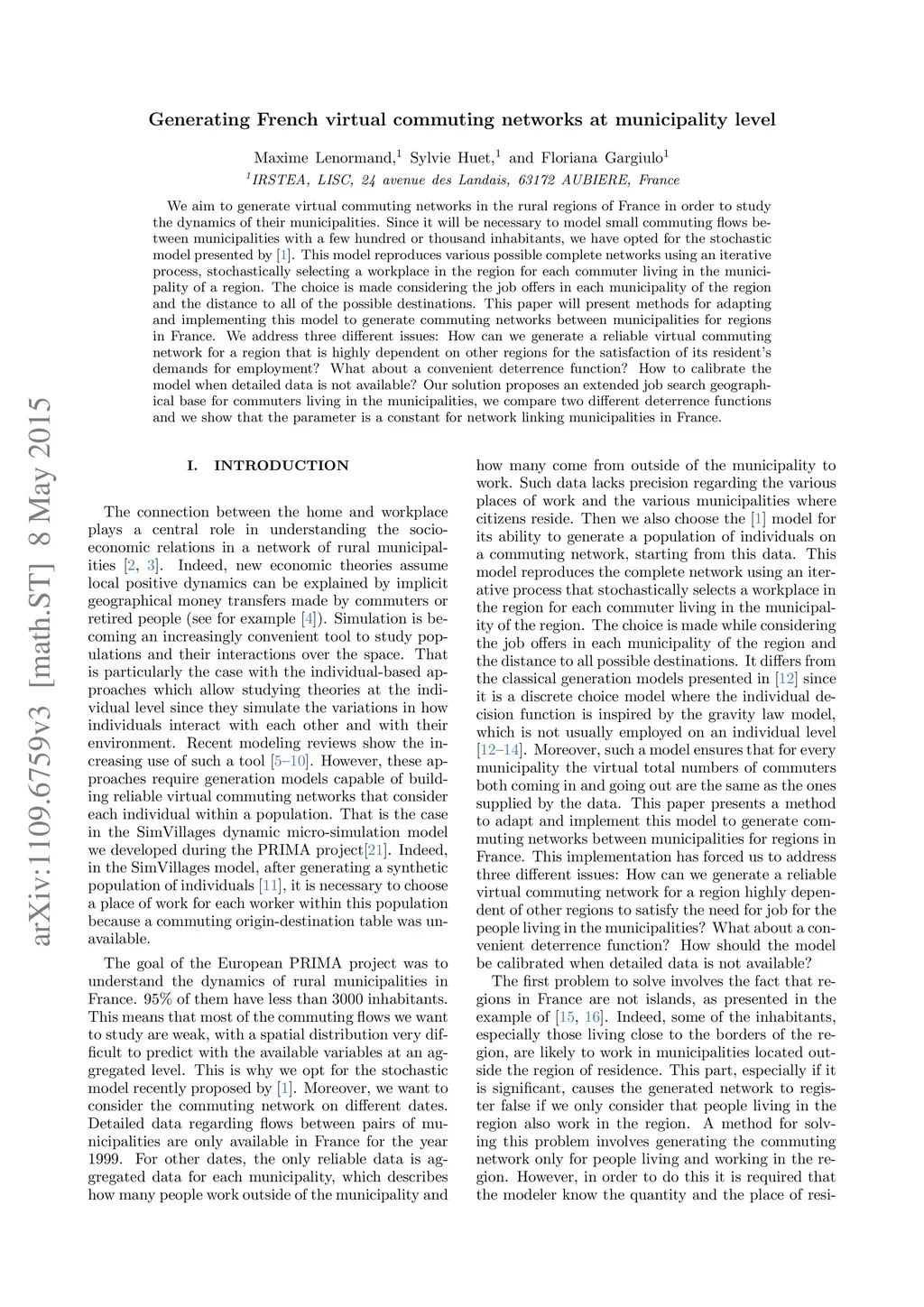Generating French virtual commuting network at municipality level