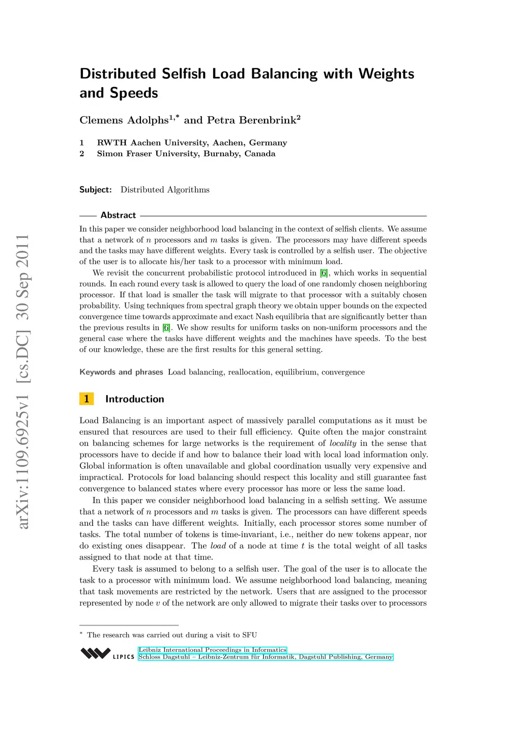 In this paper we consider neighborhood load balancing in the context of selfish clients. We assume that a network of n processors and m tasks is given. The processors may have different speeds and the tasks may have different weights. Every task is controlled by a selfish user. The objective of the user is to allocate his/her task to a processor with minimum load. We revisit the concurrent probabilistic protocol introduced in [6], which works in sequential rounds. In each round every task is allowed to query the load of one randomly chosen neighboring processor. If that load is smaller the task will migrate to that processor with a suitably chosen probability. Using techniques from spectral graph theory we obtain upper bounds on the expected convergence time towards approximate and exact Nash equilibria that are significantly better than the previous results in [6]. We show results for uniform tasks on non-uniform processors and the general case where the tasks have different weights and the machines have speeds. To the best of our knowledge, these are the first results for this general setting.