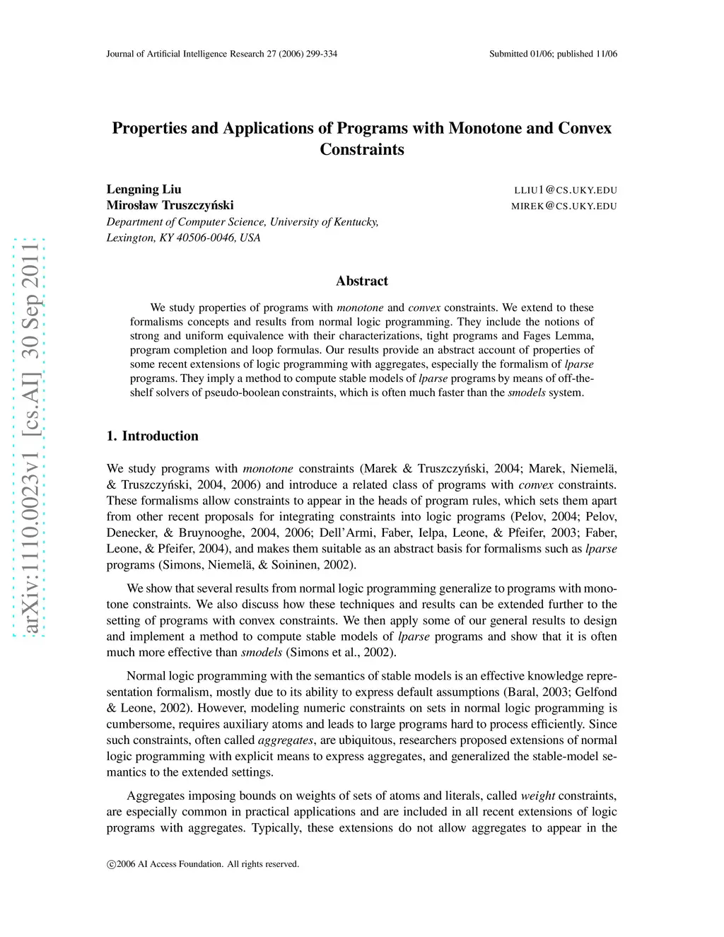 Journal of Artificial Intelligence Research (JAIR), 2006