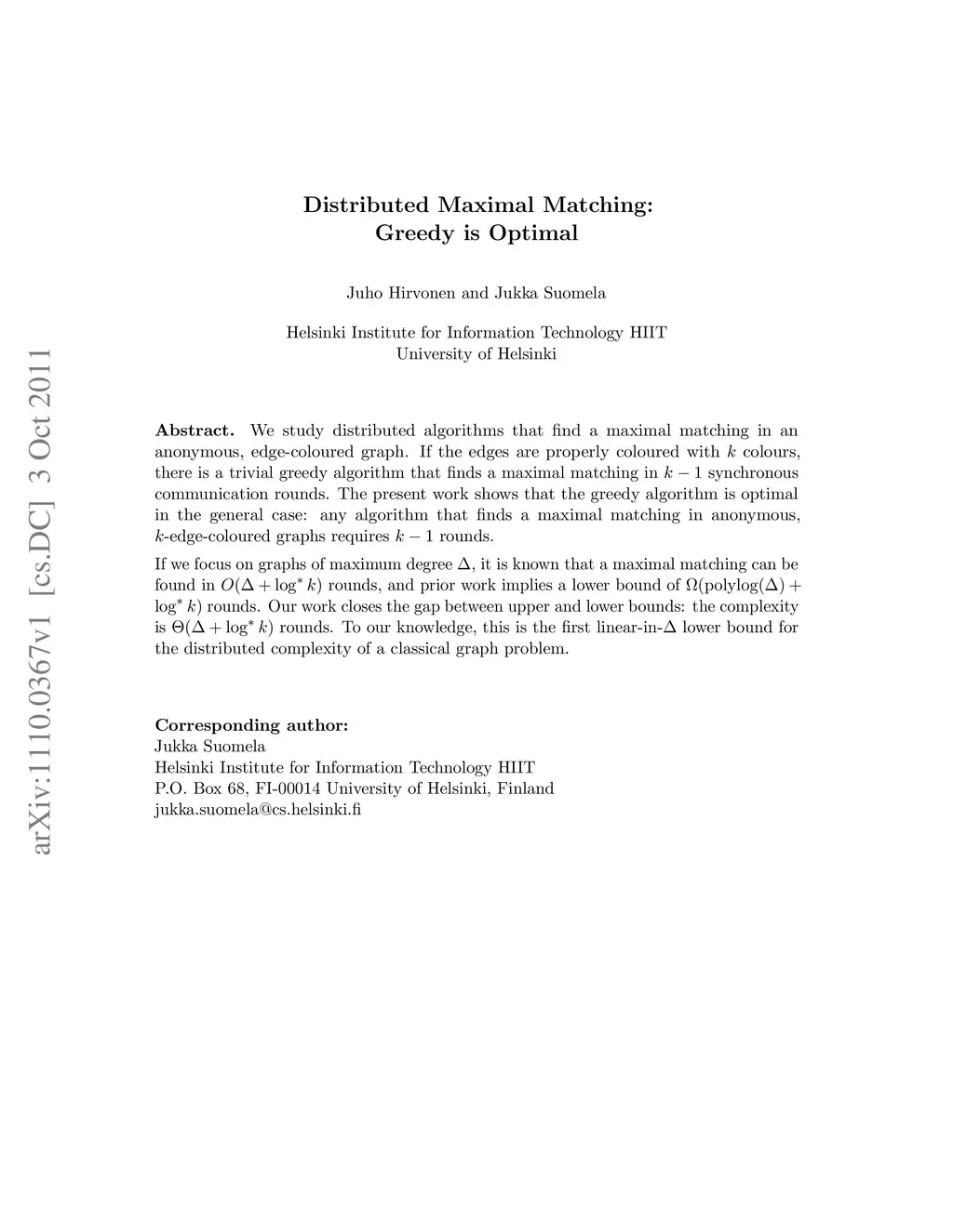 Distributed Maximal Matching: Greedy is Optimal
