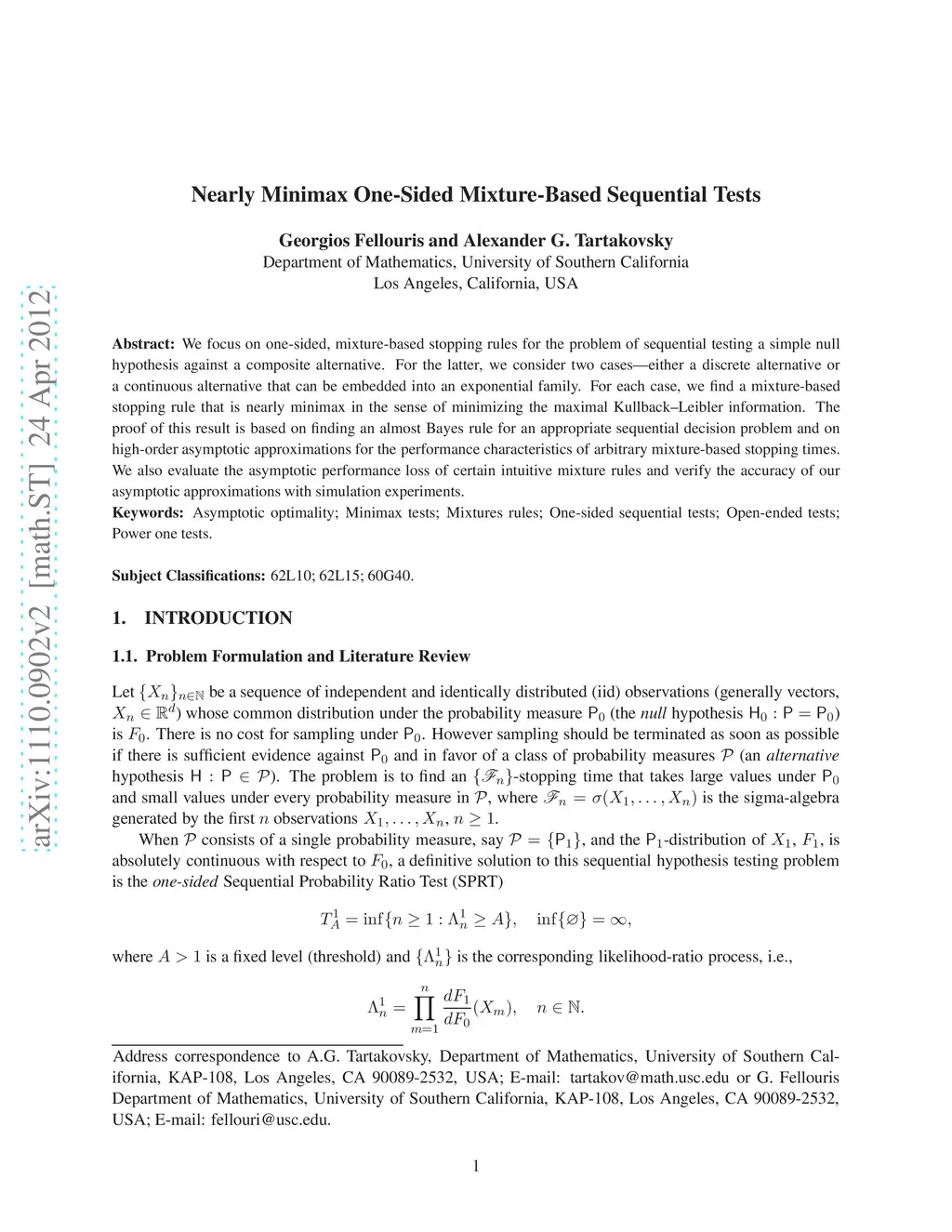 Nearly Minimax One-Sided Mixture-Based Sequential Tests