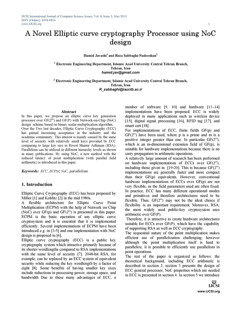 A Novel Elliptic curve cryptography Processor using NoC design