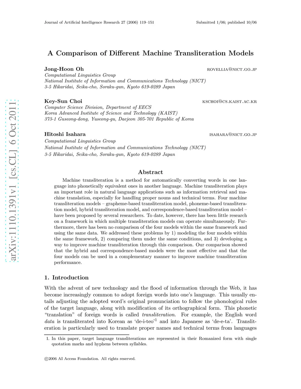 A Comparison of Different Machine Transliteration Models