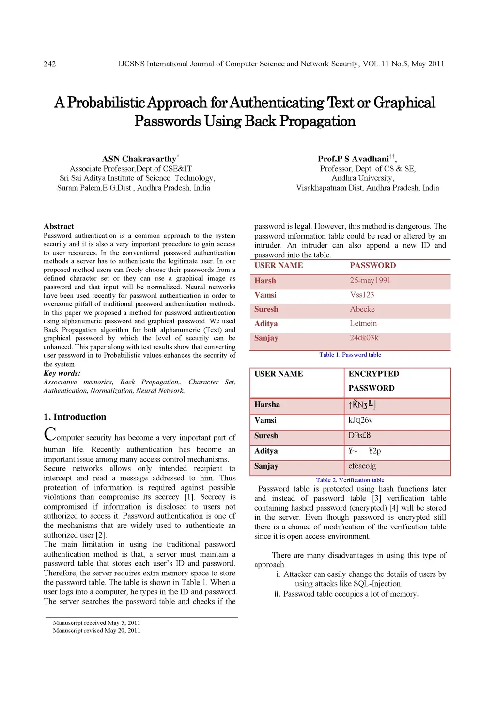 Password authentication is a common approach to the system security and it is also a very important procedure to gain access to user resources. In the conventional password authentication methods a server has to authenticate the legitimate user. In our proposed method users can freely choose their passwords from a defined character set or they can use a graphical image as password and that input will be normalized. Neural networks have been used recently for password authentication in order to overcome pitfall of traditional password authentication methods. In this paper we proposed a method for password authentication using alphanumeric password and graphical password. We used Back Propagation algorithm for both alphanumeric (Text) and graphical password by which the level of security can be enhanced. This paper along with test results show that converting user password in to Probabilistic values enhances the security of the system
