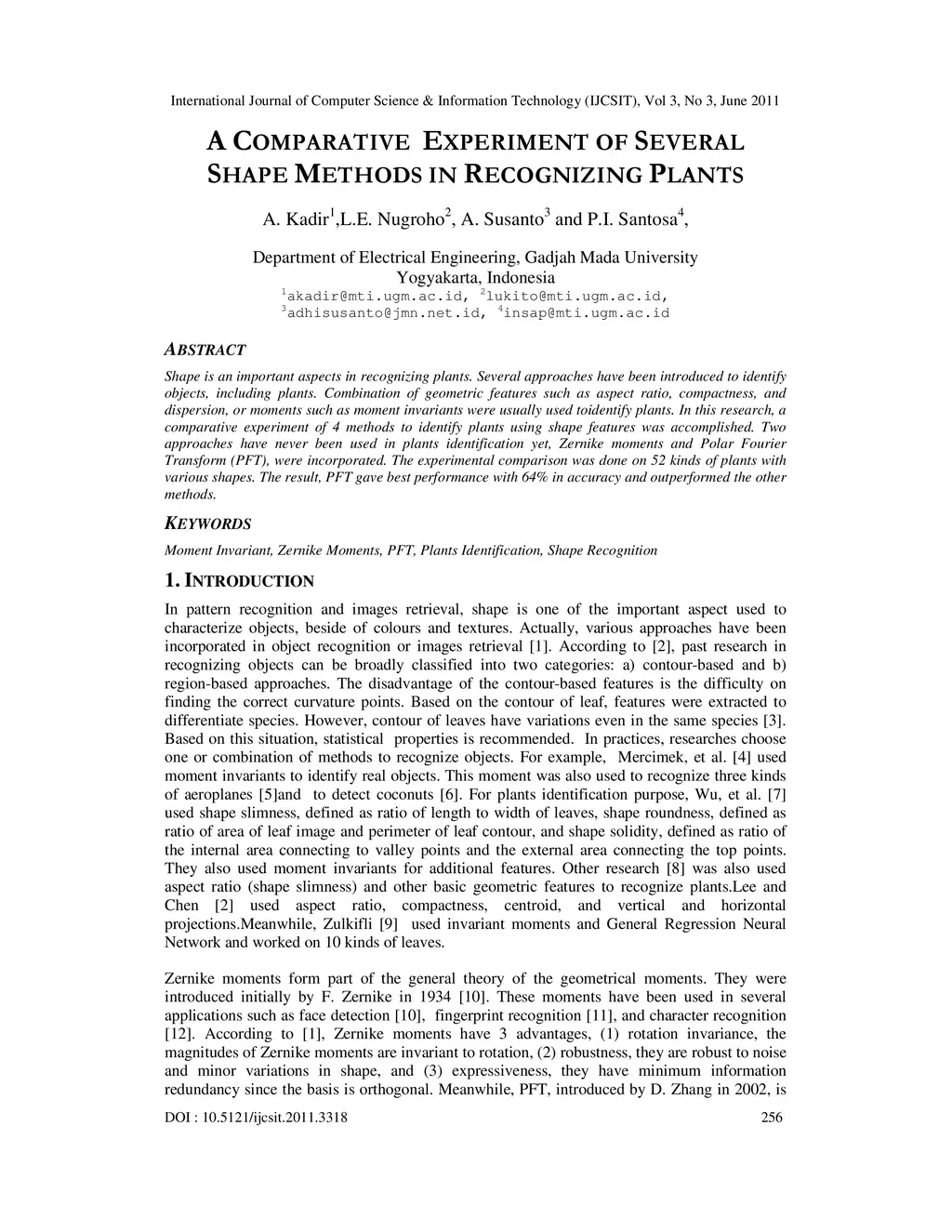 A Comparative Experiment of Several Shape Methods in Recognizing Plants
