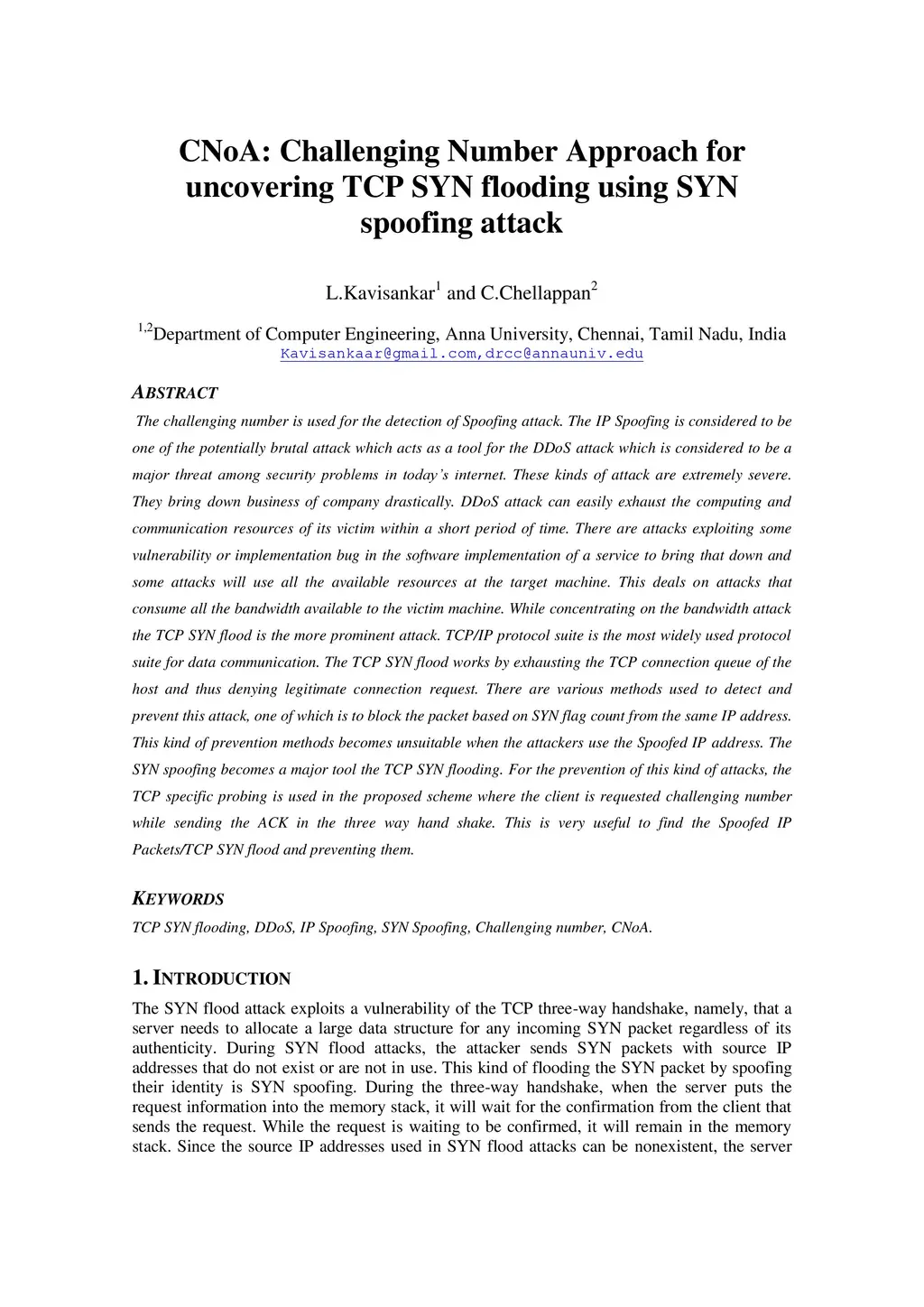 CNoA: Challenging Number Approach for uncovering TCP SYN flooding using