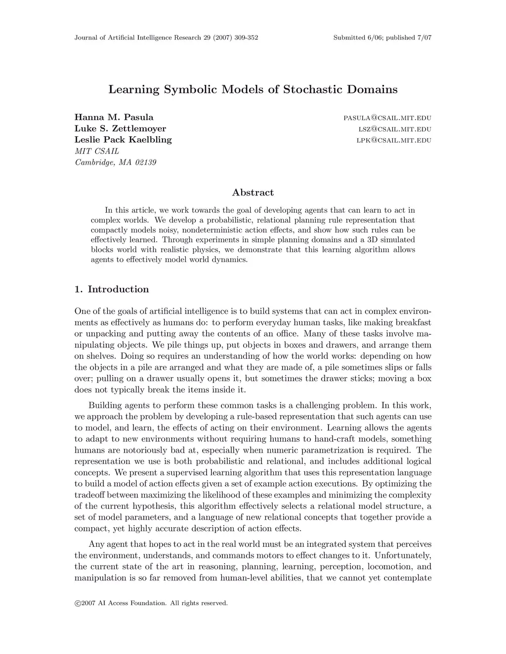 Journal of Artificial Intelligence Research (JAIR), 2007