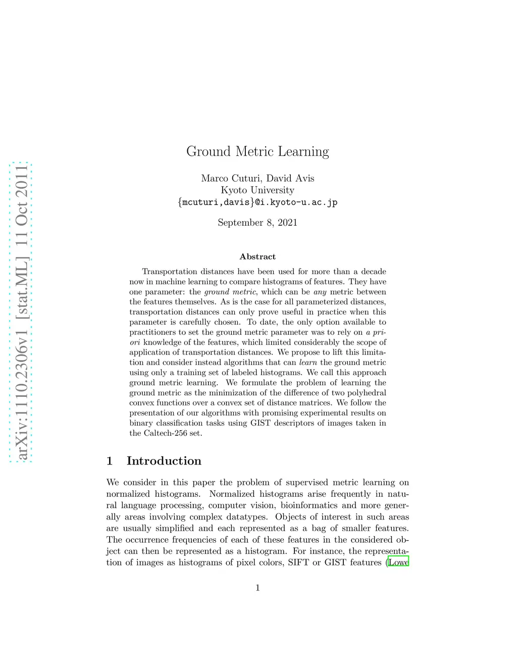 Ground Metric Learning