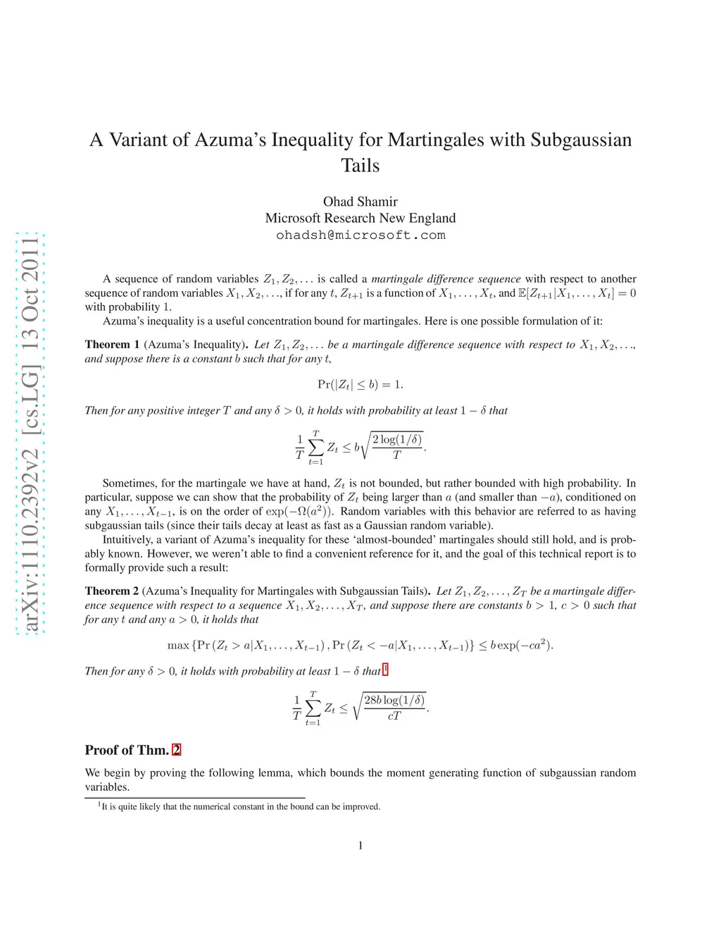 We provide a variant of Azuma's concentration inequality for martingales, in which the standard boundedness requirement is replaced by the milder requirement of a subgaussian tail.