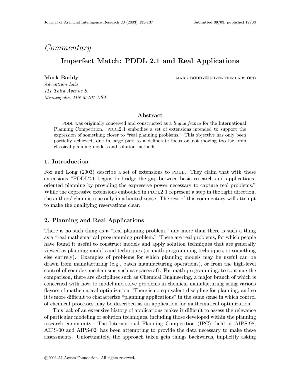 Journal of Artificial Intelligence Research (JAIR), 2003