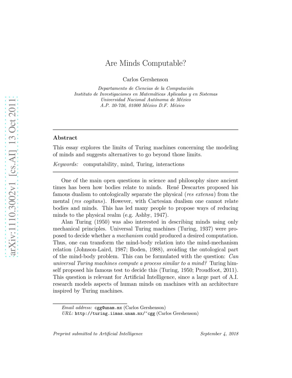 This essay explores the limits of Turing machines concerning the modeling of minds and suggests alternatives to go beyond those limits.