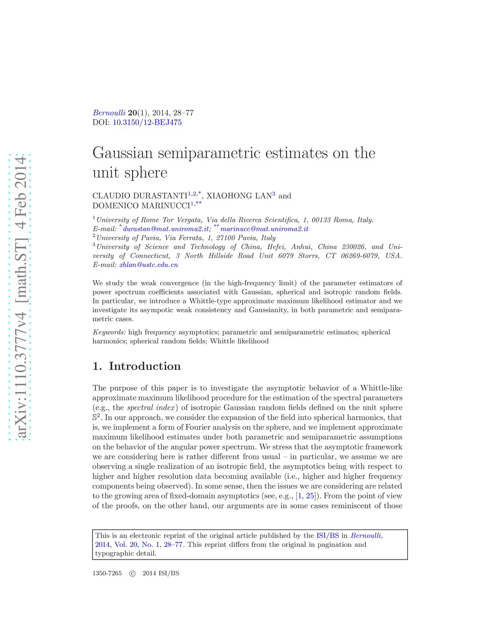 Gaussian semiparametric estimates on the unit sphere