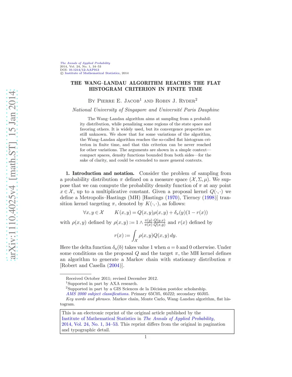 The Wang-Landau algorithm aims at sampling from a probability distribution, while penalizing some regions of the state space and favoring others. It is widely used, but its convergence properties are still unknown. We show that for some variations of the algorithm, the Wang-Landau algorithm reaches the so-called flat histogram criterion in finite time, and that this criterion can be never reached for other variations. The arguments are shown in a simple context - compact spaces, density functions bounded from both sides - for the sake of clarity, and could be extended to more general contexts.