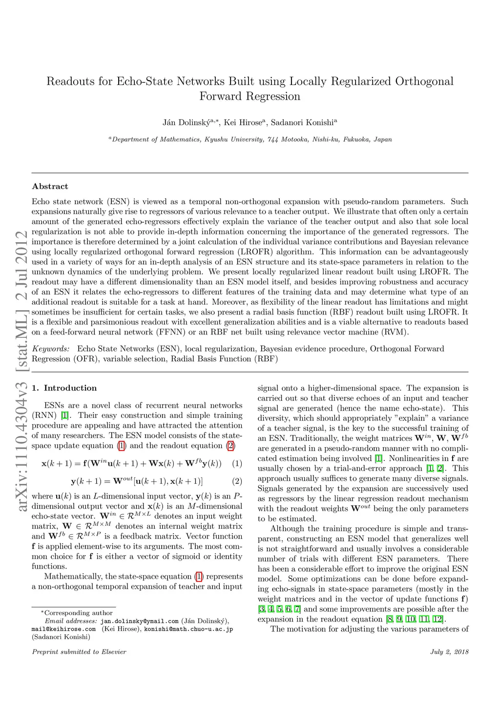 Echo state network (ESN) is viewed as a temporal non-orthogonal expansion with pseudo-random parameters. Such expansions naturally give rise to regressors of various relevance to a teacher output. We illustrate that often only a certain amount of the generated echo-regressors effectively explain the variance of the teacher output and also that sole local regularization is not able to provide in-depth information concerning the importance of the generated regressors. The importance is therefore determined by a joint calculation of the individual variance contributions and Bayesian relevance using locally regularized orthogonal forward regression (LROFR) algorithm. This information can be advantageously used in a variety of ways for an in-depth analysis of an ESN structure and its state-space parameters in relation to the unknown dynamics of the underlying problem. We present locally regularized linear readout built using LROFR. The readout may have a different dimensionality than an ESN model itself, and besides improving robustness and accuracy of an ESN it relates the echo-regressors to different features of the training data and may determine what type of an additional readout is suitable for a task at hand. Moreover, as flexibility of the linear readout has limitations and might sometimes be insufficient for certain tasks, we also present a radial basis function (RBF) readout built using LROFR. It is a flexible and parsimonious readout with excellent generalization abilities and is a viable alternative to readouts based on a feed-forward neural network (FFNN) or an RBF net built using relevance vector machine (RVM).