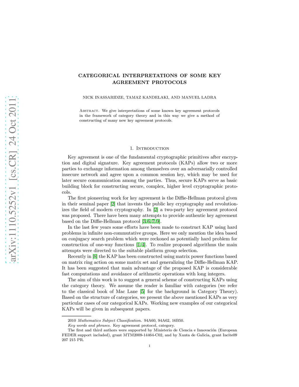 Categorical interpretations of some key agreement protocols