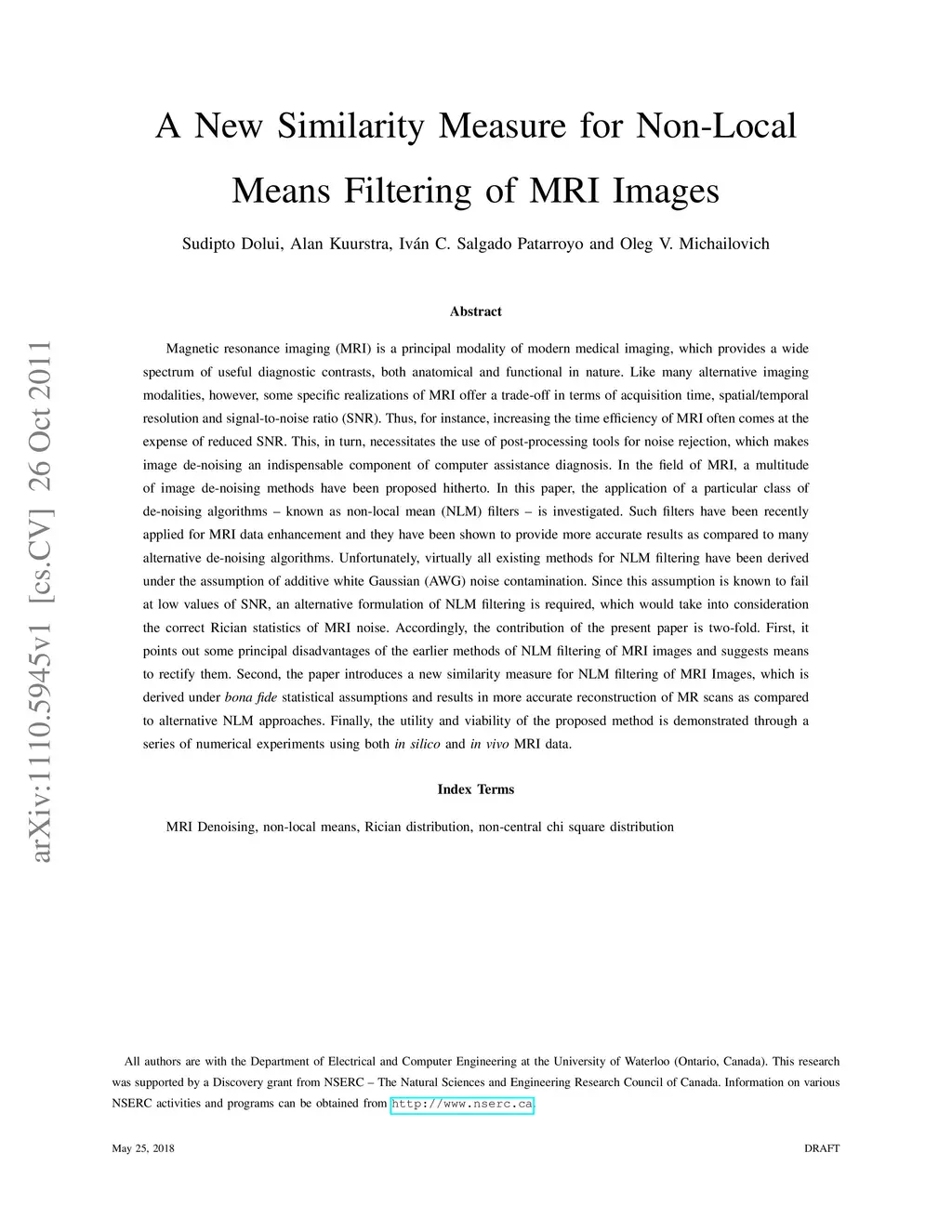 A New Similarity Measure for Non-Local Means Filtering of MRI Images