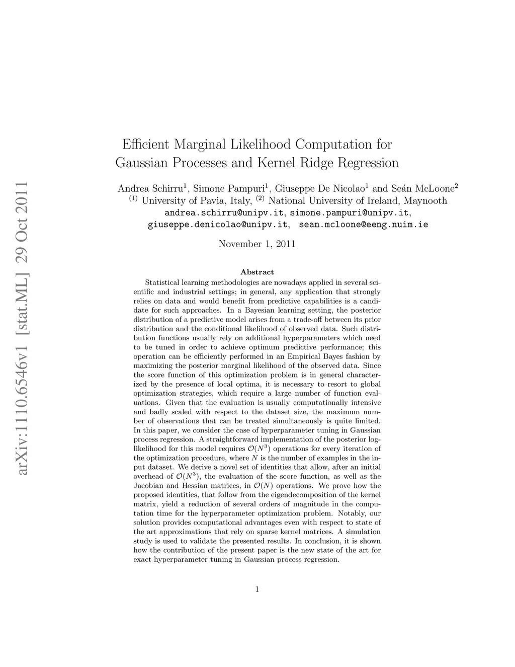 Efficient Marginal Likelihood Computation for Gaussian Process