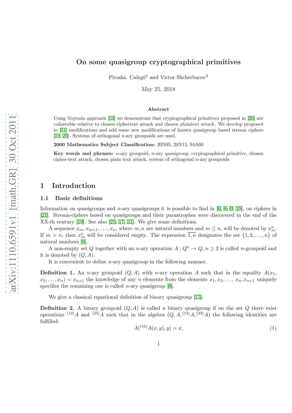 On some quasigroup cryptographical primitives